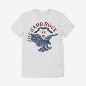 Soar into bold American spirit with the Americana Flying Eagle Tee in Gray. Featuring a distressed eagle graphic beneath arched red “Hard Rock” lettering and a proud 1971 emblem, this tee brings together heritage and edge in one powerful design. The washed gray backdrop adds a lived-in feel, while the bold artwork gives a vintage…